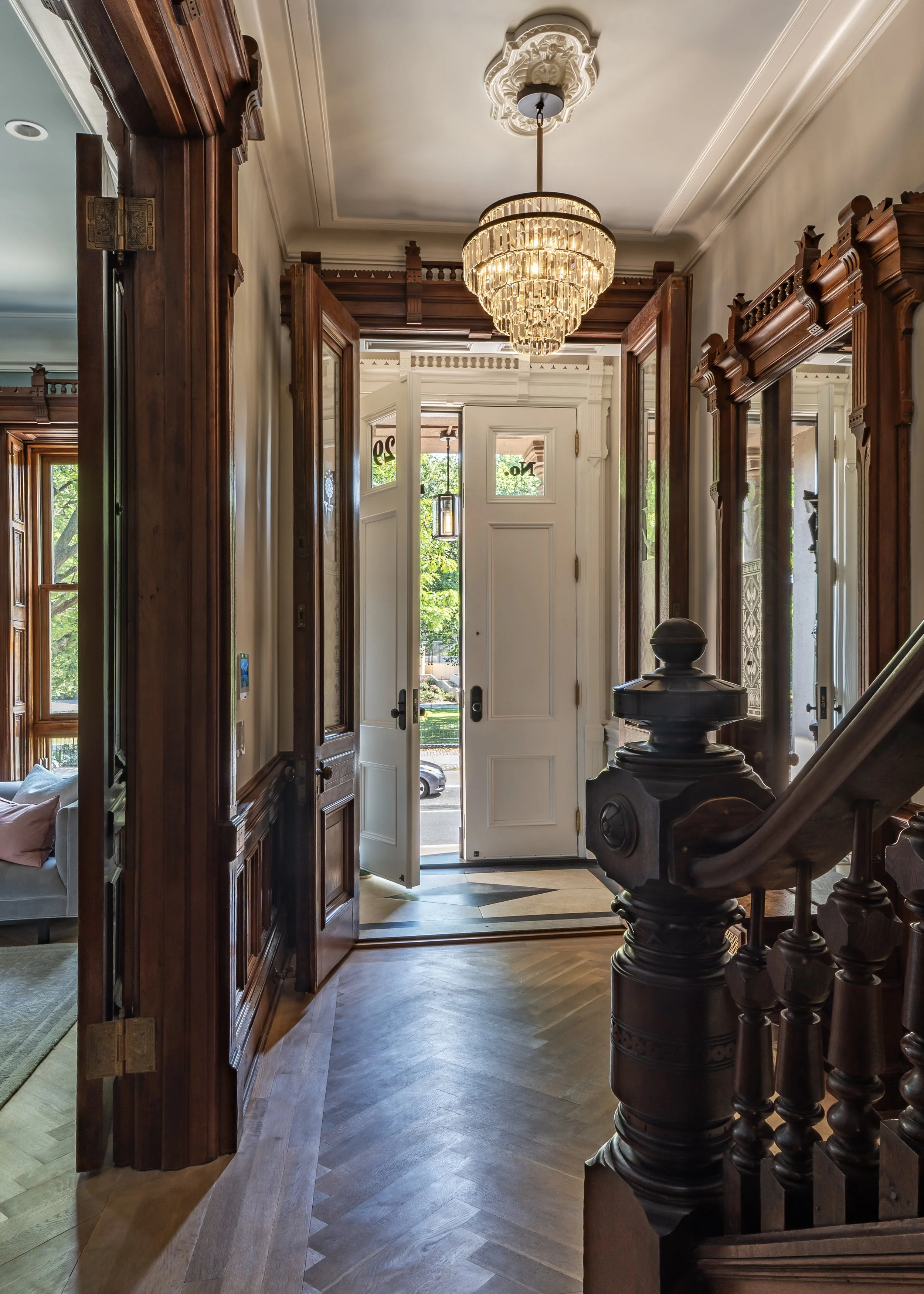 This was a gut renovation of a Harlem townhouse that rebuilt and restored much of the original wood details.