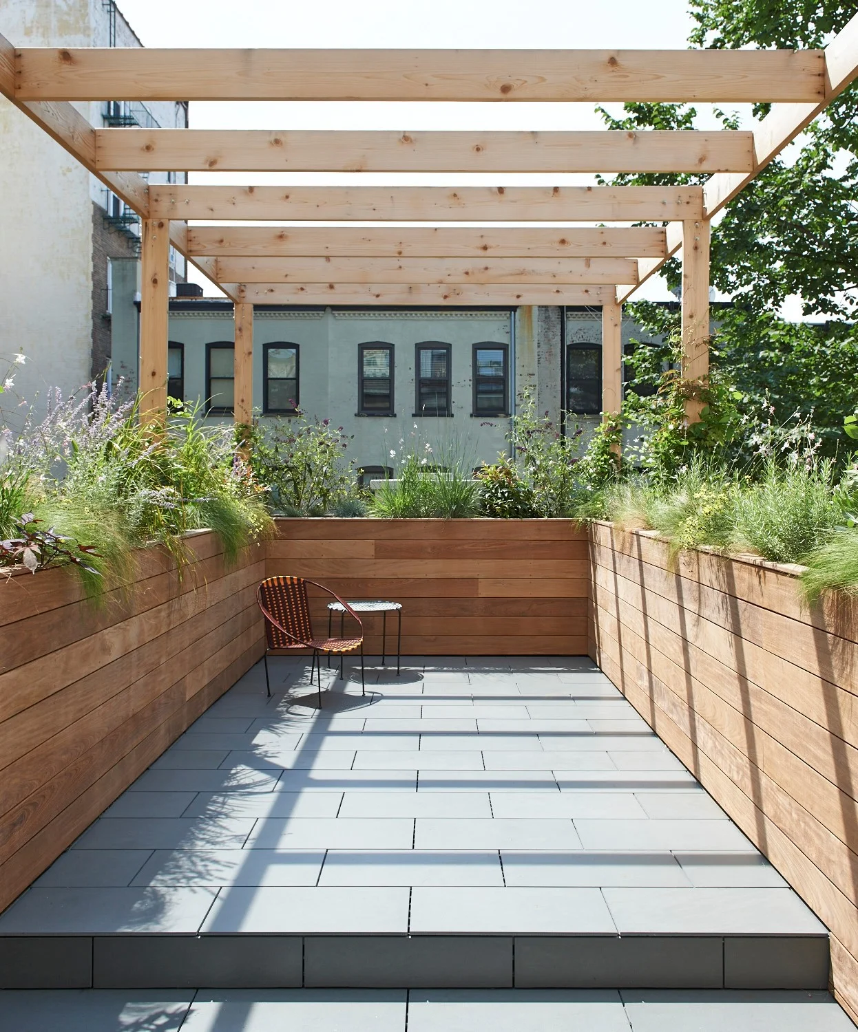 Mabbott Seidel featured in Gardenista Mabbott Seidel Architecture in New York designed a terrace above the backyard of a Park Slope, Brooklyn home. It has a border of ipe wood planters tall enough to act as privacy barriers; a cedar trellis overhead will eventually be covered by vines and climbers. “We like the combination of hard and soft materials,” said Matt Seidel. David MabbottJuly 28, 2016 Facebook0 Twitter LinkedIn0 Reddit Tumblr Pinterest0 0 Likes